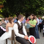 Am Samstag, 11. Juli fand die Hochzeit unserer Vizepräsidentin und gleichzeitig aktiver Keyboardspielerin statt. Der HSS stand vor der Kirche dem hübschen Paar Spalier. Beim Durchschreiten des Spaliers konnten sie die kleinen Päckchen von den Notenständern abschneiden. Beim anschliessenden Apéro führte der HSS mit dem Brautpaar das Spiel Glanz & Goria durch und für jede bereinstimmende Antwort erhielten sie ein kleines Reiseutensil für die Flitterwochen auf einem Kreuzfahrtschiff!